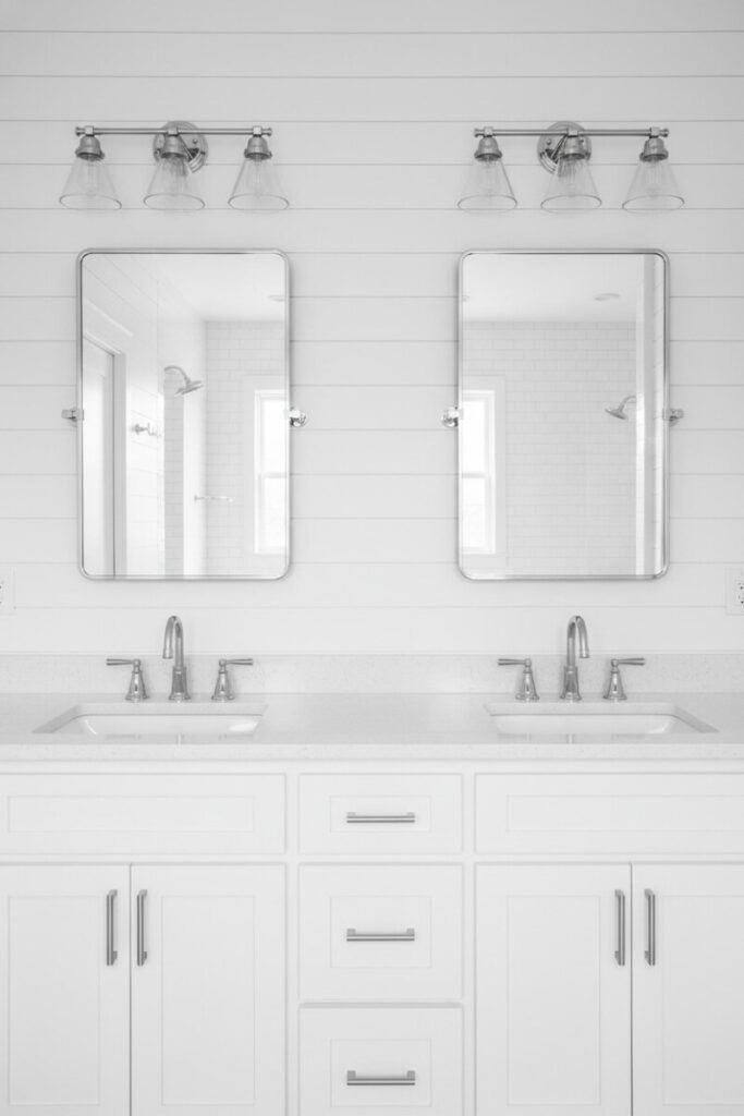 - Scale & spacing: Mirrors should align to each sink centerline with consistent margins. On wide vanities, consider slightly taller mirrors to maintain proportion.