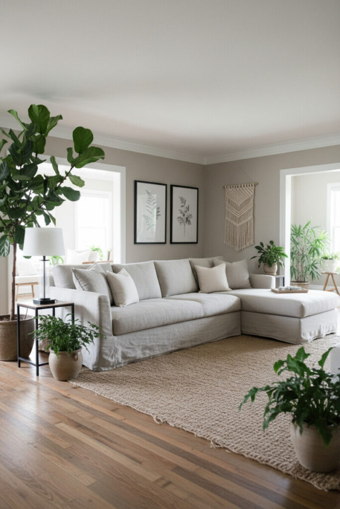16. Greige Sectional with Botanical Accents