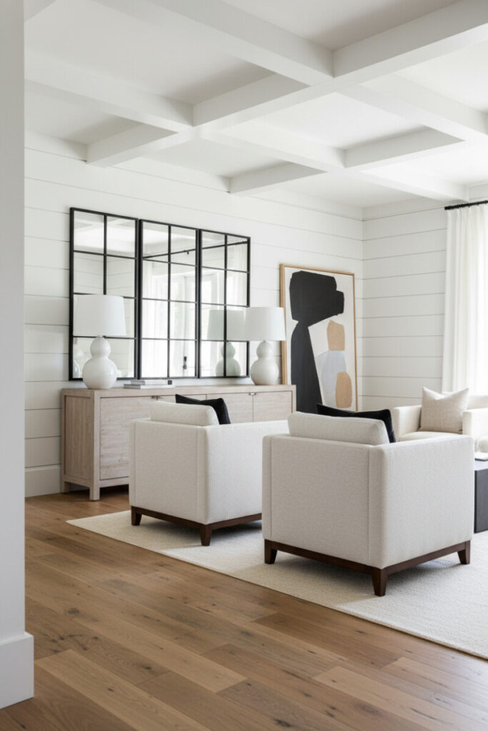 41. White Shiplap with Modern Decor