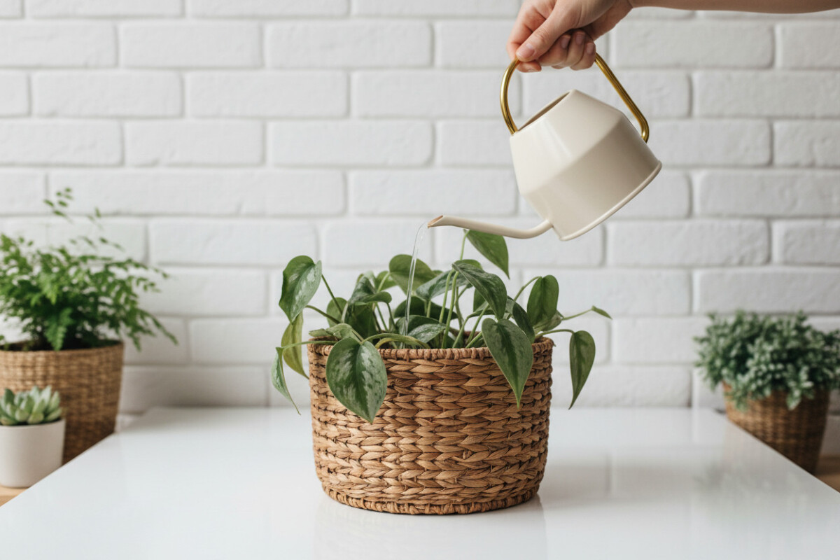 • Try Bottom Watering: Place your plant pot (with drainage holes) into a bowl of water for 15-20 minutes, allowing the roots to drink up only what they need via capillary action. This ensures deep root hydration while keeping the topsoil from becoming overly soggy.
