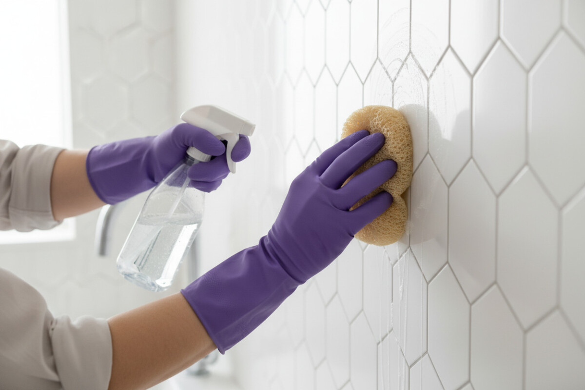 White distilled vinegar is a mild acid that is incredibly effective at cutting through hard water stains, soap scum, and grime. Unlike bleach, vinegar actually penetrates porous surfaces, making it an excellent choice for killing mold at its roots. When paired with baking soda—a gentle abrasive—you get a foaming action that scrubs away dirt without scratching your tiles. Note: Never mix vinegar with bleach.